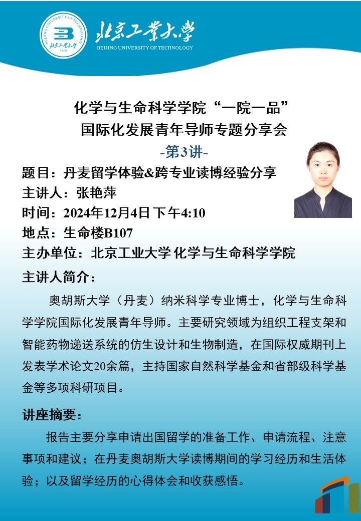 【化生|国际化】yl88858永利集团“一院一品” 国际化发展青年导师专题分享会-第3讲