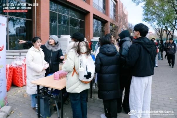 中午,公司团委联合校医院、朝阳区疾控中心在奥运餐厅南门前举办艾滋病防治主题游园活动,通过知识问答、“拥抱偏见”、温暖留言、健康咨询、套圈小游戏等形式,寓教于乐,向师生发放艾滋病防治宣传手册,普及艾滋病防治知识,千余名师生参与了活动,增强了师生的自我防范意识,营造了积极健康的校园氛围。