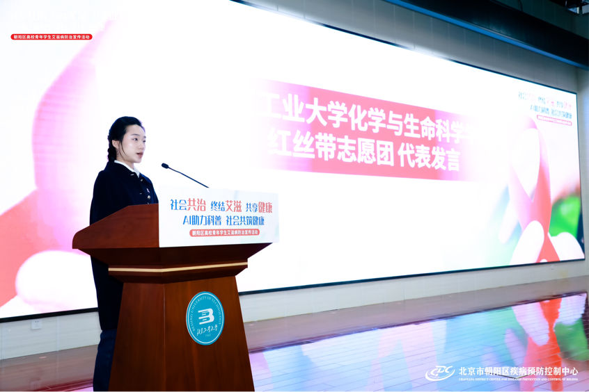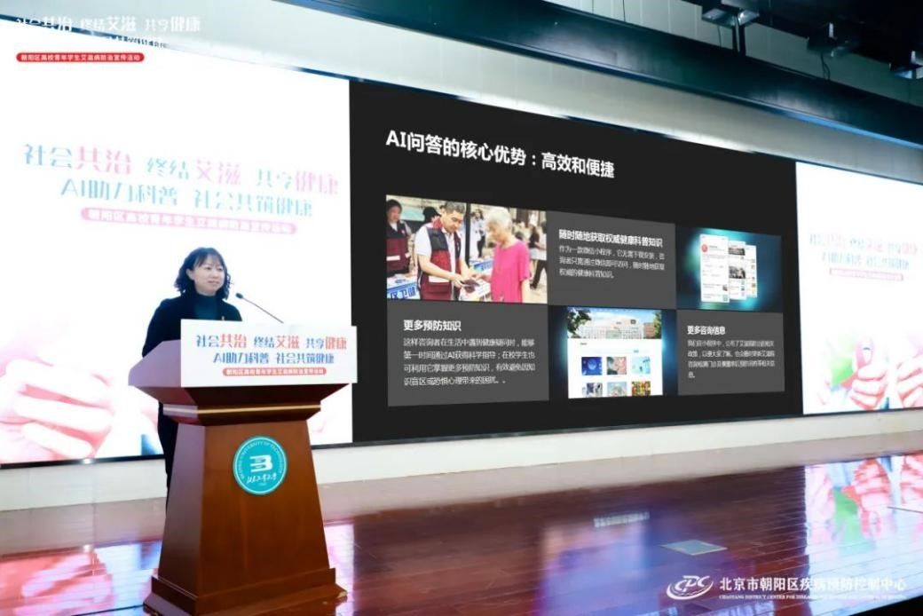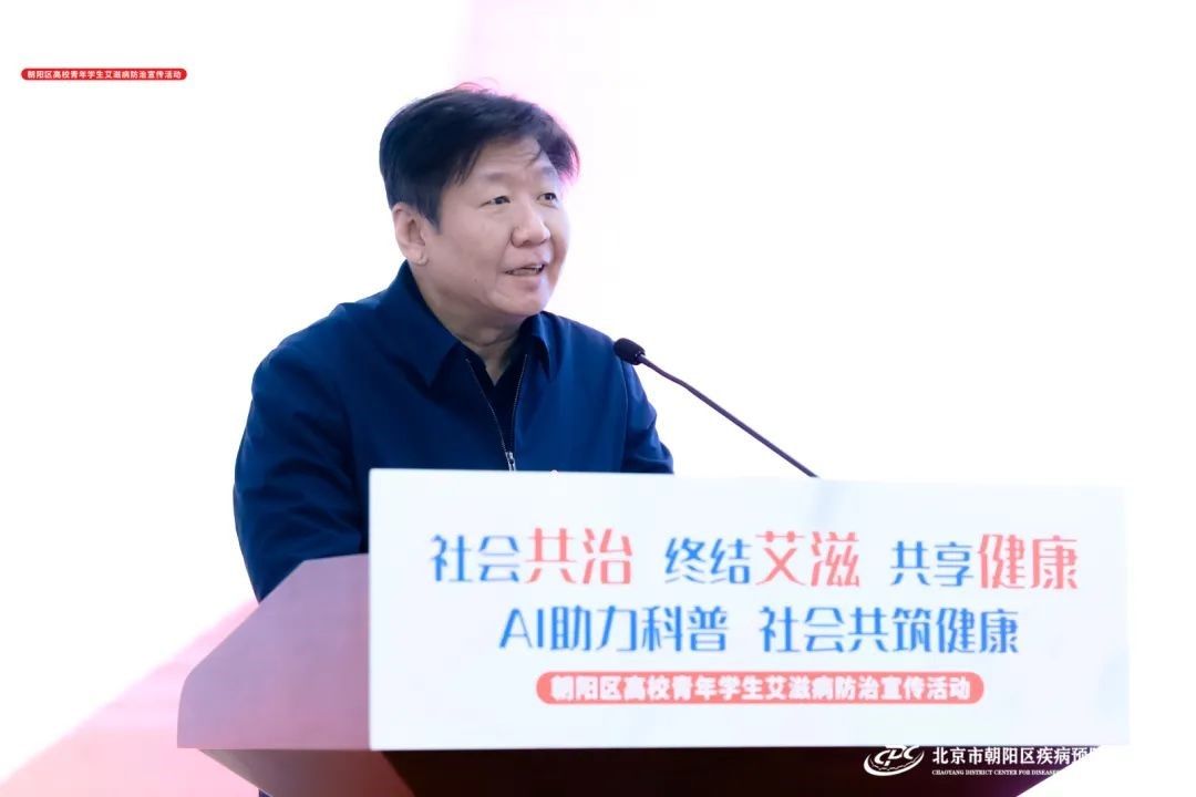 朝阳区卫健委副主任、区疾控局局长李炬介绍了朝阳区艾滋病防控工作开展情况及取得的成绩,强调了在员工中开展预防艾滋病宣传教育工作的重要性,对AI技术在艾滋病防治宣教工作中的作用给予了肯定。